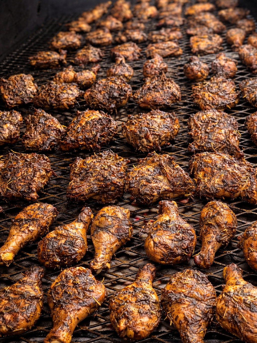 Expertly prepared jerk chicken and wings with smoky, vibrant tastes. Cooked over charcoal and wicked seasoned wood.